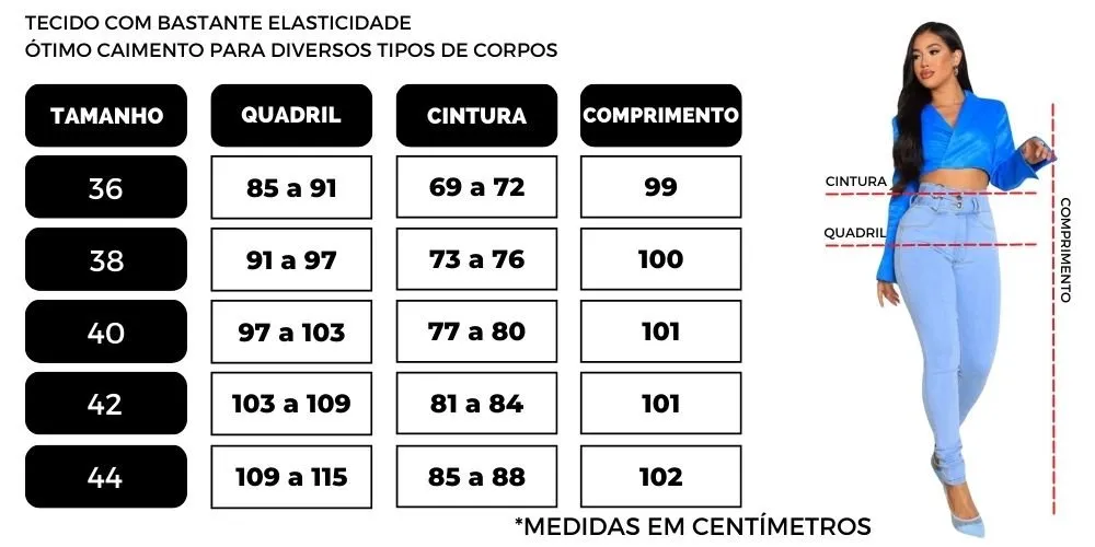 Com ótimo ajuste ao corpo e com modelagem empina o bumbum