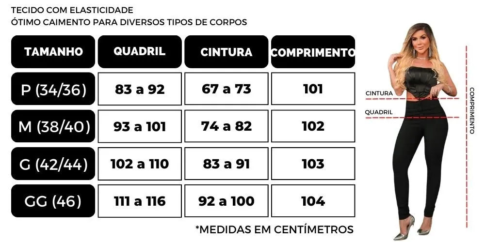 Com ótimo ajuste ao corpo e com modelagem empina o bumbum