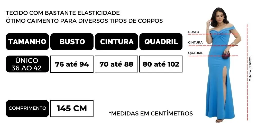 - Tamanho: Único - Veste do 36 ao 42