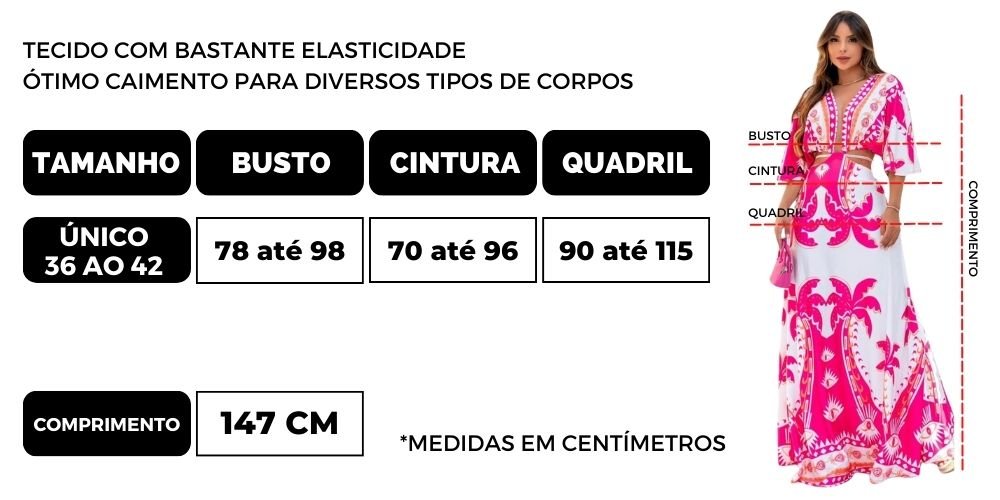 "Nota Importante: Este vestido possui estampas únicas que podem variar ligeiramente em relação à imagem exibida. Devido à natureza do processo de fabricação, as estampas podem estar posicionadas de forma diferente em cada peça. Isso torna cada vestido verdadeiramente exclusivo e especial. Tenha em mente que a variação nas estampas é uma característica do produto e não um defeito. Agradecemos sua compreensão!"