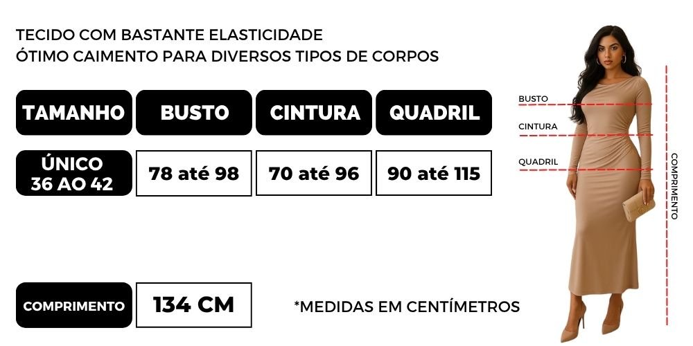 Perfeito para eventos à noite, festas, jantares, aniversários e produções elegantes. Pode ser combinado com salto alto, clutch e acessórios marcantes para um visual glamouroso.