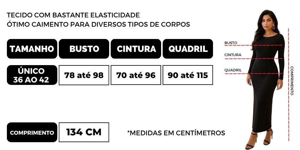 Perfeito para festas, eventos noturnos, coquetéis e jantares especiais. Pode ser combinado com salto alto, clutch estruturada e acessórios marcantes para uma produção impactante.
